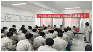 2018年5月31日,經(jīng)固原市總工會、金昱元集團(tuán)公司工會同意,金昱元廣拓能源有限公司工會委員會根據(jù)《中國工會章程》和《工會基層組織選舉工作條例》,按照民主程序,組織寧夏金昱元炔烴節(jié)能有限公司召開了首屆職工代表大會,選舉產(chǎn)生了首屆基層工會委員會委員和工會主席。