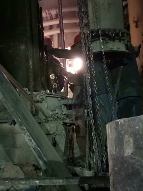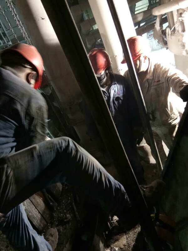 高溫酷暑難不倒檢修將士,他們采取早上提前上班,下午錯(cuò)開高溫時(shí)段,工作持續(xù)至晚上的錯(cuò)峰措施,有條不紊地進(jìn)行拆除更換工作。盡管如此,大家仍然要承受高溫酷暑的考驗(yàn),現(xiàn)場道路上設(shè)備轟鳴,管廊架上焊割火花飛濺,員工們揮汗如雨,激情四射,呈現(xiàn)一片催人奮進(jìn)、如火如荼的檢修景象。拆除下料柱、接觸元件、處理料面等檢修工作緊張有序的進(jìn)行著公司領(lǐng)導(dǎo)率先垂范堅(jiān)守第一線。