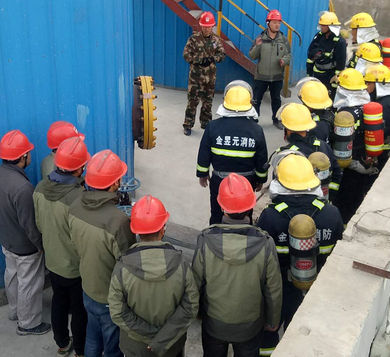 演練結(jié)束后由鹽業(yè)公司安全管理人員組織園區(qū)消防隊(duì)與廣拓能源保衛(wèi)科警消班對(duì)鹽業(yè)公司油庫(kù)內(nèi)部布局、消防設(shè)施、設(shè)備及工藝管路、油庫(kù)儲(chǔ)量等進(jìn)行參觀、講解,同時(shí)與園區(qū)消防隊(duì)人員就鹽業(yè)公司消防措施進(jìn)行交流。