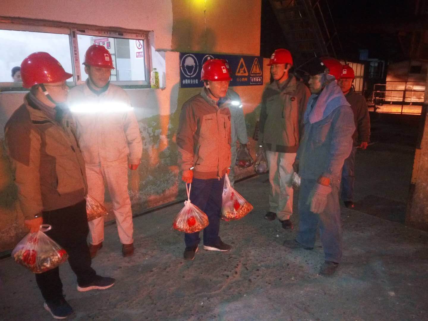 當(dāng)許多人坐在電視機前,吃著團圓飯,看著春節(jié)晚會時,有這么一群人仍然堅守在崗位上,他們就是資源再生公司的一線工人,舍小家保大家是他們愛崗敬業(yè)的見證。除夕夜22:00左右,資源再生公司各級管理人員匯聚在一起,帶著禮品,深入生產(chǎn)一線,為員工送去了節(jié)日的問候,感謝大家在節(jié)日期間恪盡職守、任勞任怨、無私奉獻(xiàn),希望大家在繁忙的工作中注意身體健康,并囑咐堅守崗位的職工們一定要確保自身安全及設(shè)備、工藝、質(zhì)量的安全穩(wěn)定運行,也祝資源再生公司的全體職工及家屬新年快樂。
