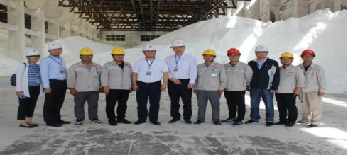 白鴻一行先后到興昊永勝鹽業(yè)公司鹽庫、鹽銷裝置、熱力裝置、企業(yè)文化展廳等地進(jìn)行實(shí)地調(diào)研,并在鹽庫進(jìn)行了合影留念。