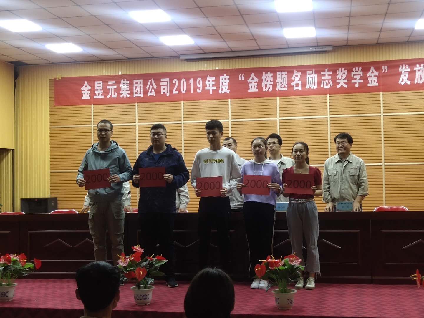 2019年8月23日,集團(tuán)公司領(lǐng)導(dǎo)為2019年度金昱元的職工子女考取一、二本院校。發(fā)放“金榜題名勵志”獎學(xué)金,此次活動鼓勵了全體金昱元職工,學(xué)習(xí)這些父母培養(yǎng)優(yōu)秀子女的經(jīng)驗(yàn),同時(shí),此大會能為培養(yǎng)出優(yōu)秀的兒女的父母表示祝賀。