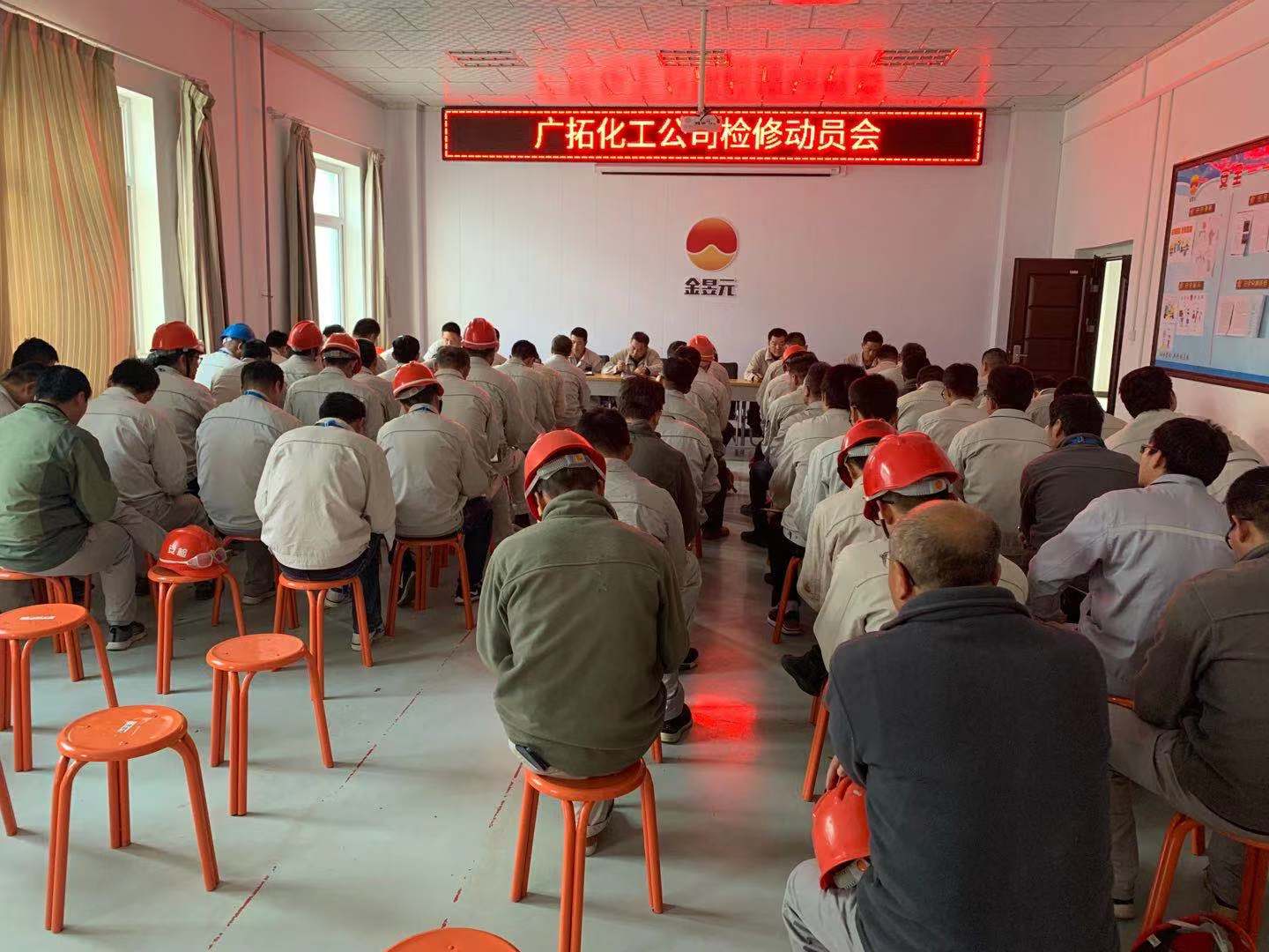 2019年10月22日至25日,廣拓化工公司為期四天的檢修已拉開(kāi)序幕,21日下午公司組織召開(kāi)技術(shù)員及以上管理人員檢修前的動(dòng)員大會(huì)。