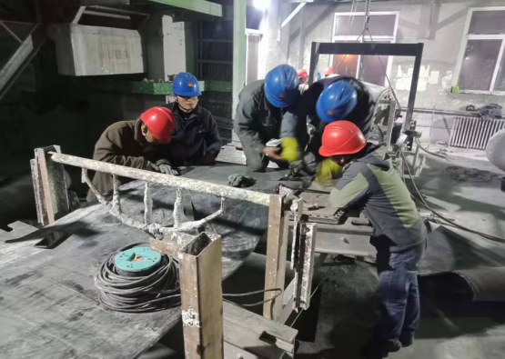因?yàn)榭紤]到生產(chǎn)的緊急性,不能等,必須馬上維修。那天夜里,由于當(dāng)班人員人手不夠,為了縮短搶修時(shí)間,維修工人剛得知消息后從睡夢(mèng)中爬起來(lái)趕到了搶修現(xiàn)場(chǎng)同當(dāng)班人員一同組織搶修,他們似乎也忘卻了周?chē)僚暗暮L(fēng),也許在這一刻不是他們不冷而是他們深知自己的職責(zé)。