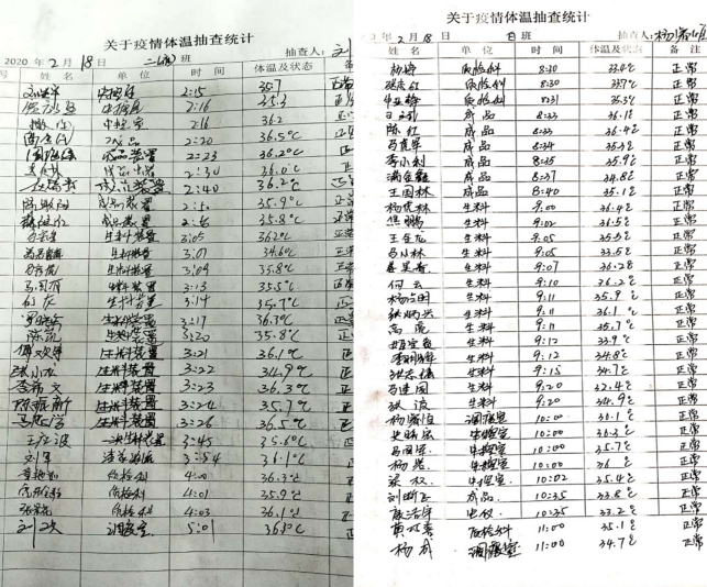 在公司北大門,他們對進出廠區(qū)職工及車輛登記,嚴(yán)格“疫情”防控工作。