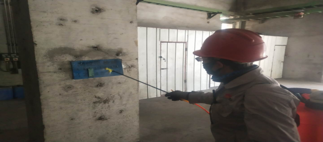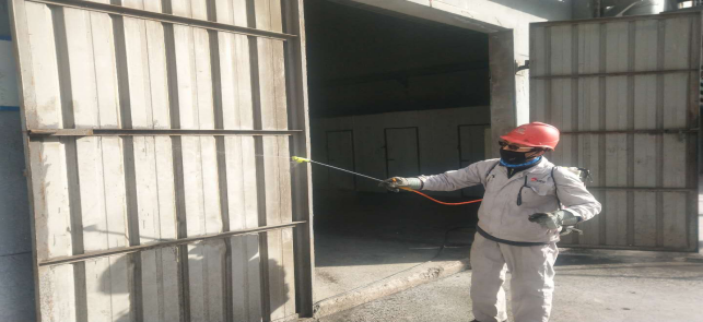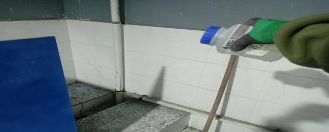 對廠區(qū)衛(wèi)生間消毒。