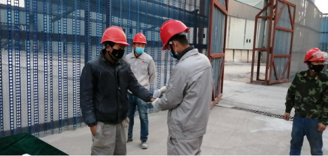 在園區(qū)南門,今日截止下午17時整,他們檢測、消毒、登記車輛78輛,人員100人,車輛正常,人員體溫均在正常范圍。