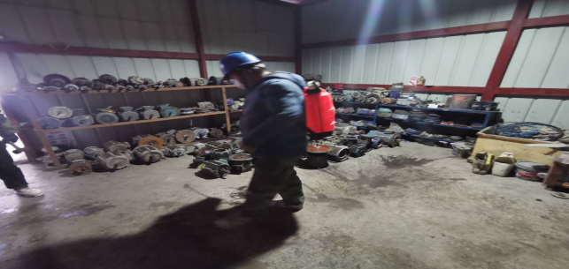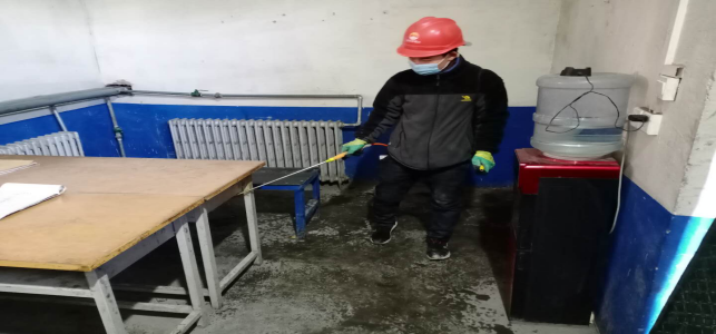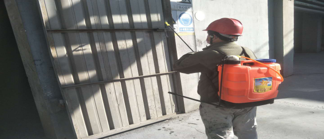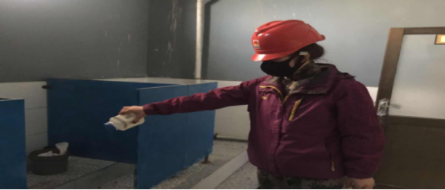 對廠區(qū)衛(wèi)生間消毒。