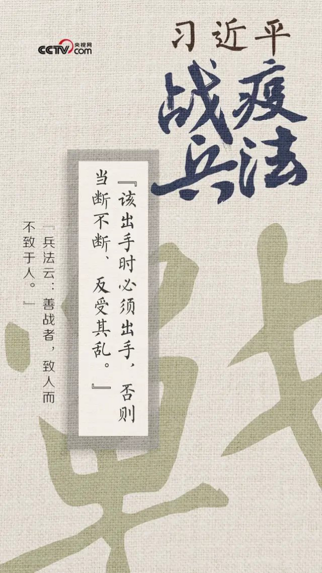 從“遭遇戰(zhàn)”到“阻擊戰(zhàn)”,從“重中之重”到“人民戰(zhàn)爭(zhēng)”,從“頭等大事”到“全面勝利”……觀(guān)勢(shì)、謀局、落子,總書(shū)記在親自指揮這場(chǎng)人民戰(zhàn)爭(zhēng)的過(guò)程中,很多對(duì)策、措施與中國(guó)古代兵家思想高度契合。央視網(wǎng)《人民領(lǐng)袖》欄目推出系列特稿《習(xí)近平戰(zhàn)“疫”兵法》,與您一同領(lǐng)悟其中精髓。