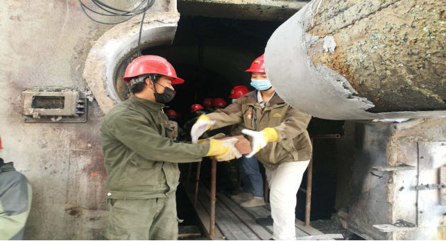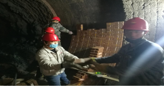 在回轉窯挖補窯磚現(xiàn)場,他們手傳手,開展接力,窯磚補填……