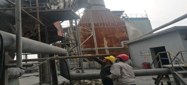 7、預熱器清理內(nèi)部結皮及積料,檢查下料管道翻板閥、脫銷噴槍(未完成);