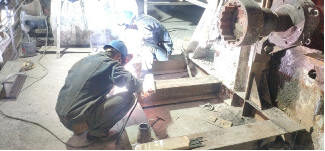 (8)回轉(zhuǎn)窯輪帶擋圈及墊板補(bǔ)焊加固,檢查大齒圈齒面磨損并對(duì)齒面打磨修復(fù)(未完成);