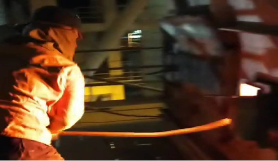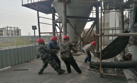 在清理結(jié)皮現(xiàn)場,面對預(yù)熱器本身設(shè)備的炙烤外,還有夏季本身炎熱,而他們在每一處作業(yè)點,都是那樣“激戰(zhàn)正酣”,他們輪流揮舞著大錘敲打著鋼釬,熟練、小心的用著“水炮”,一遍又一遍,敲碎了“結(jié)皮”,疏通了管道,每一點都是力氣活,耗時耗力。有時候,往往一錘下去鋼釬卻絲毫不動,但我沒從他們臉上看到灰心的表情。近12個小時的工作量,但從井然有序的場面我仍然可以看出他們有分工也有協(xié)作,同時銘記安全第一。