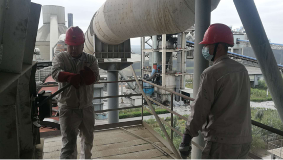 在預(yù)熱器每一層框架,讓我們都會有一種“未見其人,先聞其聲”的感覺,錘子的敲擊聲、檢修負責人的交底聲,聲聲入耳,像是一首和諧的樂章。