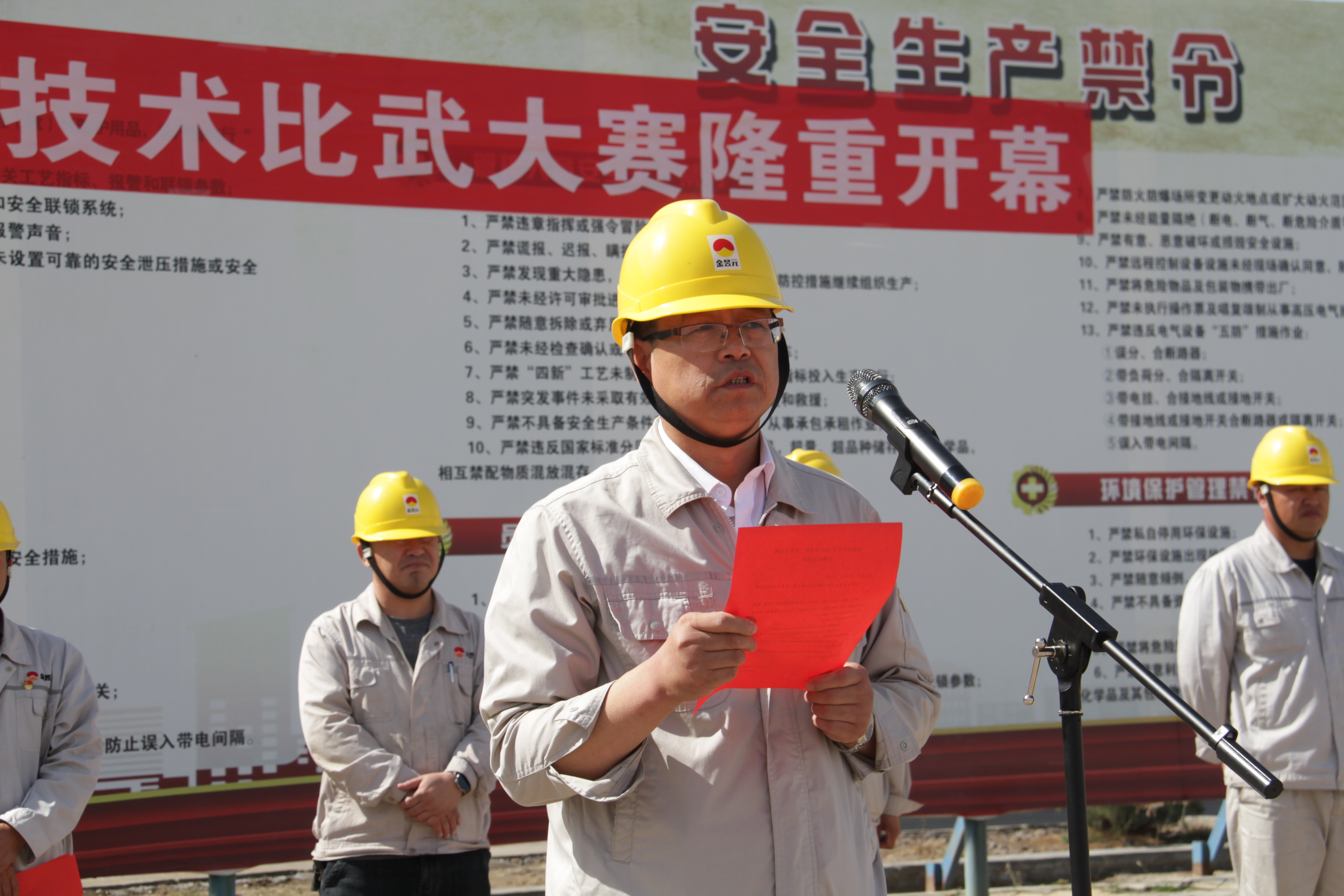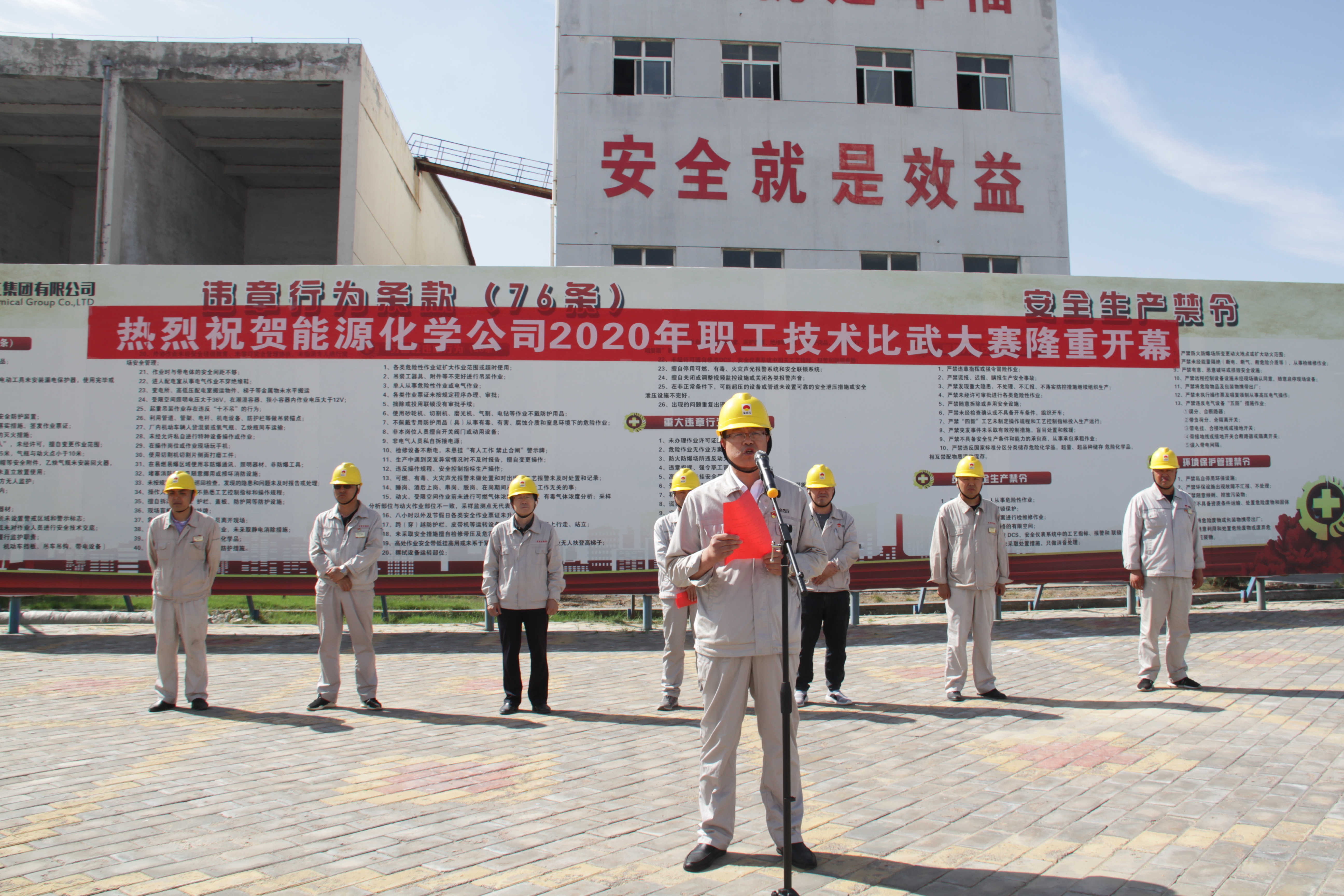 9月16日,由能源化學(xué)公司主辦的“2020年度職工技術(shù)比賽”活動(dòng)開幕式在公司廣場舉行,公司總經(jīng)理王華、副總經(jīng)理范進(jìn)、俞峰,總經(jīng)理助理馬澤、副總工程師商俊平和集團(tuán)公司工會(huì)副主席李新、片區(qū)總經(jīng)理助理丁青林出席了開幕式。公司各科室、裝置負(fù)責(zé)人,各裝置代表隊(duì)共100余人參加。開幕式由公司黨支部書記吳建明主持。