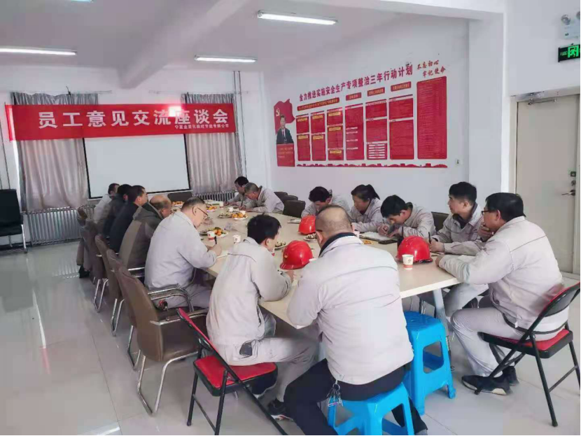 為進(jìn)一步增進(jìn)員工與管理人員之間的有效溝通,了解員工對(duì)公司管理的意見建議,以及解決員工在工作和生活中遇到的實(shí)際問題,調(diào)動(dòng)公司全體員工的主動(dòng)性、創(chuàng)造性,營(yíng)造良好的企業(yè)文化氛圍,按照集團(tuán)公司黨委工作安排, 2020年12月2日下午14:00-15:30和16:00-17:30,炔烴節(jié)能有限公司干部職工意見交流座談會(huì)在集控樓一層會(huì)議室正式召開。