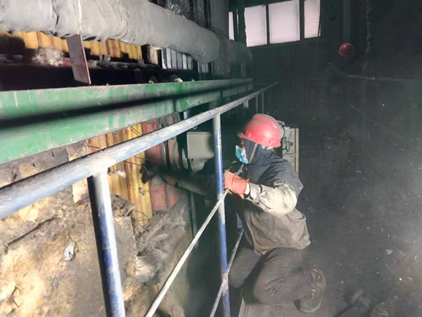 在檢修現(xiàn)場,隨處可見檢修人員忙碌的身影,他們不斷的變換著動作,靈活地使用各種型號的工器具。檢修過程中每一個起吊都小心翼翼,每一個動作都井然有序。只看見熱力裝置長毛文軒從爐膛狹小的人孔鉆進爐膛,借助二十多米高的腳手架,對水冷壁管的磨損情況進行細致檢查,對澆注料、燃燒器、過熱器等受損情況也進行了逐一查看。他帶領熱力裝置全員由點到面,由里到外、全方位監(jiān)管督導,有效提升檢修質(zhì)量。