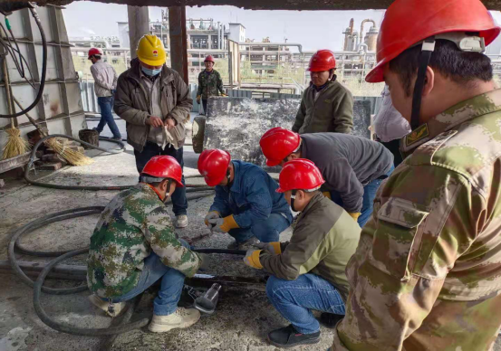 期間,此次檢修的片區(qū)業(yè)務(wù)指導(dǎo)領(lǐng)導(dǎo)有總調(diào)度長徐建華、設(shè)備工程師劉迪文深入現(xiàn)場進行指導(dǎo)工作。公司參檢人員為了搶時間,搶進度,副總經(jīng)理梁軍組織人員一方面實行車輪戰(zhàn),以最快的速度清理完窯內(nèi)物料,另一方面組織裝置專業(yè)技術(shù)人員鉆入熾熱的窯體內(nèi),進行窯磚回填。經(jīng)過全體人員的連續(xù)不間斷的奮戰(zhàn),比計劃提前了3個小時。為確保搶修安全和質(zhì)量,公司總經(jīng)理、副總經(jīng)理、安環(huán)生產(chǎn)科科長及成品裝置長始終盯靠在現(xiàn)場,對搶修工作進行指導(dǎo)和協(xié)調(diào)。