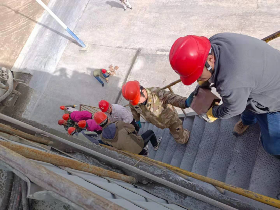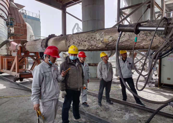 4月11日晚間22時50分許,回轉(zhuǎn)窯筒體24.5米處出現(xiàn)紅窯現(xiàn)象,根據(jù)經(jīng)驗,初步判斷是窯磚脫落;剞D(zhuǎn)窯系統(tǒng)止料,計劃挖補。安環(huán)生產(chǎn)科科長張振忠得知消息后,立即向各級領(lǐng)導(dǎo)進行了逐級匯報,他們不約而同的在第一時間趕回廠里,立即采取相應(yīng)措施,迅速組織搶修。12日凌晨1:40分許,全體管理人員及崗位巡檢人員頂著寒風(fēng),組織實施第一步搶搶修工作——打開窯門,進行降溫。上午8:00分,公司領(lǐng)導(dǎo)緊急召開搶修前技術(shù)和安全交底,調(diào)集人員,冒著窯內(nèi)高溫,進行邊卸料邊轉(zhuǎn)運邊挖補工作。按照分工,全體參戰(zhàn)人員都在緊張有序的忙碌著。