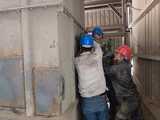 8月9日—11日,在1101皮帶電石渣上料口技改現(xiàn)場,同水泥磨檢修相比,這里由于上料環(huán)境,環(huán)境密閉、空氣不對流,狹小的空間,為了趕進度,提高技改質(zhì)量,這讓檢修工人更加需要具有更強的團結(jié)協(xié)作精神,他們在技術(shù)員的指揮下,分割、配對、焊接……生產(chǎn)裝置負責人丁伏山同志告訴大家:化工目前降負荷運行,大家要咬緊牙關(guān)、克服困難,盡快完成技術(shù)改造項目,盡早投入生產(chǎn)。在現(xiàn)場他是指揮員又是戰(zhàn)斗員,每一個細節(jié)他都結(jié)合經(jīng)驗,進一步對現(xiàn)場改造完善再完善,帶領(lǐng)員工經(jīng)得住高溫的“烤驗”,經(jīng)得住連續(xù)作戰(zhàn)的勞累,于8月11晚20:30分,嚴格按工藝流程要求,完成此項技改項目,控制了下料的均勻性和連續(xù)性,確保了烘干破系統(tǒng)溫度和配料的穩(wěn)定性。