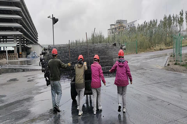 細(xì)雨中,早到的操作工將成品庫西側(cè)的所有舊龍骨清理至機(jī)修廠房前面空地處,一千多條龍骨,在他們在小小的板車上一車一車的拉運(yùn)完,防砸鞋和褲管都已濕透,但看著清理完整齊的現(xiàn)場,所有的辛苦頓時(shí)煙消云散,掛滿灰塵的臉上洋溢出笑容。