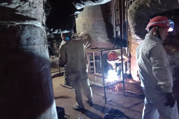 此時(shí)隆隆的吊車聲響徹在檢修現(xiàn)場。檢修作業(yè)最關(guān)鍵的時(shí)刻到來了,只見維修班長熟練用割槍切割著設(shè)備與框架的支點(diǎn),通紅的鐵水四處飛濺不時(shí)落在他的衣服上,留下黑色的小孔。他也顧不得這些,迅速完成了設(shè)備與框架的切割,其他人員也各司其職忙著斷口。隨著吊鉤的慢慢升起設(shè)備輕松與框架分離,由于空間狹小吊臂的活動空間有限,吊裝作業(yè)顯得異常的緩慢,這對長時(shí)間在寒冷的室外作業(yè)人員是個(gè)極大的考驗(yàn),伴隨著指揮人員最后的口令下達(dá),舊的再沸器設(shè)備被緩緩地放到地上。此時(shí)已過中午時(shí)分,雖然大家早已饑腸轆轆,但是每個(gè)人的臉上洋溢著笑容,因?yàn)樗麄兩钌畹亩,只有?jīng)歷了艱辛的拼搏,才會收獲成功的喜悅。