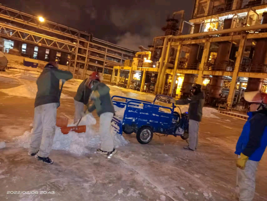 正月初五,固原迎來了2022年的第一場雪。堅(jiān)守夜班的化工橫一班接班后,調(diào)度就對橫一班員工強(qiáng)調(diào):“今天白天下了一天雪,晚上氣溫肯定會下降,現(xiàn)場巡檢時(shí)一定要注意防滑,上下樓梯抓好扶手,穩(wěn)走慢行。防凍防凝是巡檢重點(diǎn)內(nèi)容,大家要加大巡檢力度和頻次,尤其是要保證保溫伴管、排污閥、疏水閥等關(guān)鍵部位正常,操作人員要認(rèn)真監(jiān)控,及時(shí)觀察控制參數(shù)的變化情況,精準(zhǔn)調(diào)控,確保安全生產(chǎn)運(yùn)行”。一場大雪后,固原市銀裝素裹,人們在盡情地享受瑞雪樂趣。但在廠區(qū)內(nèi)“沙沙”聲、“咣咣”聲不絕于耳,當(dāng)班的班組長及員工“以雪為令”,迅速行動,不畏嚴(yán)寒,揮舞著鐵鍬、掃帚、簸箕等一切能派上用處的除雪工具,你鏟我掃相互配合,全面徹底清理室外道路、巡檢通道、裝置現(xiàn)場等區(qū)域的積雪和凍冰,經(jīng)過數(shù)小時(shí)的奮戰(zhàn),現(xiàn)場干凈整潔,切實(shí)保證了裝置安穩(wěn)生產(chǎn)。