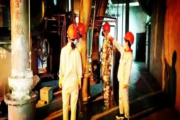 為了讓操作工能夠在操作方面全面了解各崗位的工藝流程,裝置領(lǐng)導(dǎo)自去年就開始調(diào)整人員,讓不同崗位的操作工輪流學(xué)習(xí)不同崗位。在這種工作精神的指導(dǎo)下,我在操作配料的同時(shí)我還學(xué)習(xí)到了配電、凈化方面的專業(yè)知識(shí)。比如:電石生產(chǎn)的工藝流程是把燒好的石灰經(jīng)篩分后送入石灰倉貯藏,待用。把符合電石生產(chǎn)需求的石灰和蘭炭按規(guī)定的配比進(jìn)行配料,用斗式提升機(jī)將爐料送至電石爐爐頂料倉,經(jīng)過料管向電爐內(nèi)加料,爐料在電爐內(nèi)經(jīng)過電極電弧墊和爐料的電阻熱反應(yīng)生成電石,電石定時(shí)出爐,放至電石鍋,經(jīng)冷卻后得到成品電石等等。