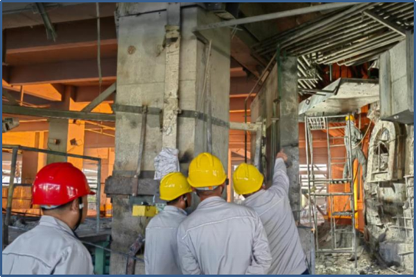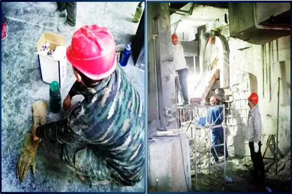 時光如白駒過隙,1#、2#電石爐已安全穩(wěn)定生產(chǎn)六年有余,爐內(nèi)碳磚、耐火磚燒損嚴重,已達到大修周期,加之五、六月份大量使用佳成礦山石料,爐內(nèi)鐵水多,四臺電石爐爐眼附近耐火磚、碳磚不同程度燒損,尤其是1#爐3#眼、2#爐3#眼,爐眼上方爐壁被鐵水擊穿,出爐工作不能正常進行,嚴重影響到電石爐的安全穩(wěn)定運行;為盡快消除制約安全生產(chǎn)穩(wěn)定運行的隱患問題,為電石爐穩(wěn)定運行提供強有力的保障,在公司統(tǒng)一部署下,自五月底開始,集各裝置維修工力量由電石一裝置組織對兩臺爐爐壁進行修復(fù)。