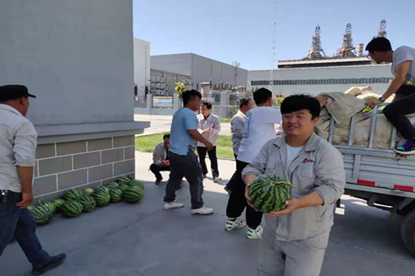 隨著氣溫不斷升高,公司電石冶煉、水泥回轉(zhuǎn)窯眾多崗位進(jìn)入了“燒烤”模式,為致敬高溫下的勞動者,近日,公司領(lǐng)導(dǎo)組織了為一線人員送清涼活動。大桶的綠豆湯、礦泉水、西瓜、藿香正氣水等防暑物品送到一線崗位工人手中,為烈日下奮戰(zhàn)在一線工作崗位上的勞動者帶來了絲絲清涼和關(guān)懷。