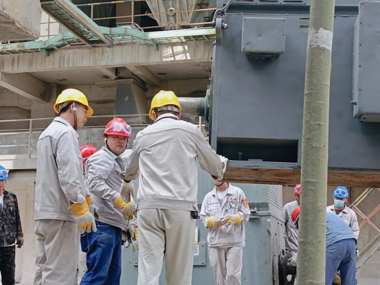 時值仲夏高溫時節(jié),為徹底根除烘干破碎機(jī)主電機(jī)帶病運行,對生產(chǎn)平穩(wěn)運行存在的安全威脅。8月1日上午8:00分,伴隨著回轉(zhuǎn)窯風(fēng)機(jī)轟鳴聲的停止,一場與時間賽跑的“搶修戰(zhàn)役”開始打響。