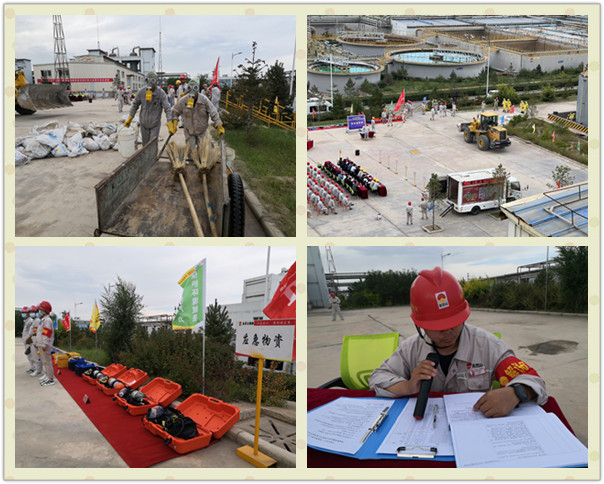 “報(bào)告總指揮,各演練部門準(zhǔn)備完畢,氯乙烯球罐單體泄漏應(yīng)急演練是否開始!薄伴_始!”隨著演練總指揮、片區(qū)副總經(jīng)理、廣拓能源總經(jīng)理賈存富的一聲令下,應(yīng)急演練正式開始。”本次演練設(shè)定為一般突發(fā)事件應(yīng)急響應(yīng),演練內(nèi)容是:廣拓能源有限公司廢酸處理稀硫酸罐排污閥泄露,由于稀硫酸泄漏量較大,啟動(dòng)突發(fā)應(yīng)急預(yù)案。主要演練現(xiàn)場警戒、人員撤離、筑壩攔截預(yù)防稀硫酸外溢、危險(xiǎn)廢物收集。