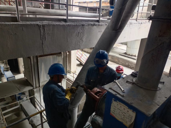 安裝技術(shù)要求高、安全風(fēng)險(xiǎn)大的項(xiàng)目,總經(jīng)理吳紅衛(wèi)同志牽頭組織召開碰頭會(huì),拿出技術(shù)方案,確保安裝精度、密封等滿足要求。特別是回轉(zhuǎn)窯大齒圈、烘干破旋風(fēng)筒補(bǔ)焊、窯頭電袋收塵器檢查、預(yù)熱器更換掛片、生料磨輥壓機(jī)堆焊等檢修項(xiàng)目,牽頭組織風(fēng)險(xiǎn)設(shè)別,確保安全受控。對(duì)于檢修周期長(zhǎng)及環(huán)境溫度要求高的檢修項(xiàng)目(工藝耐火磚及澆注料),合理安排施工時(shí)間,倒排施工節(jié)點(diǎn)時(shí)間,按計(jì)劃節(jié)點(diǎn)要求完成檢修任務(wù)。