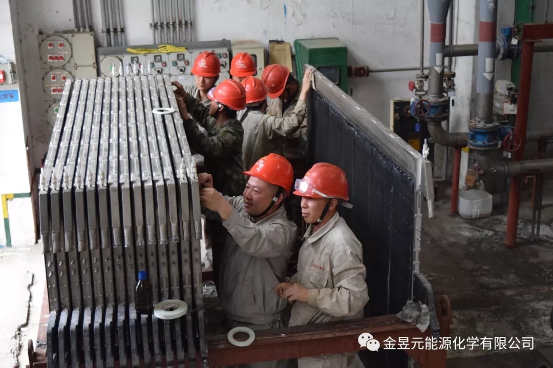 離子膜裝置B槽檢修作業(yè)現(xiàn)場(chǎng),裝置將去年A槽檢修換膜總結(jié)的經(jīng)驗(yàn)和方法充分運(yùn)用到此次作業(yè)中,同時(shí)裝置檢修人員積極與廠家技術(shù)人員在鏟膠、貼膠、貼膜等作業(yè)方法和技術(shù)上進(jìn)行廣泛的交流學(xué)習(xí),有效加快了檢修進(jìn)度。