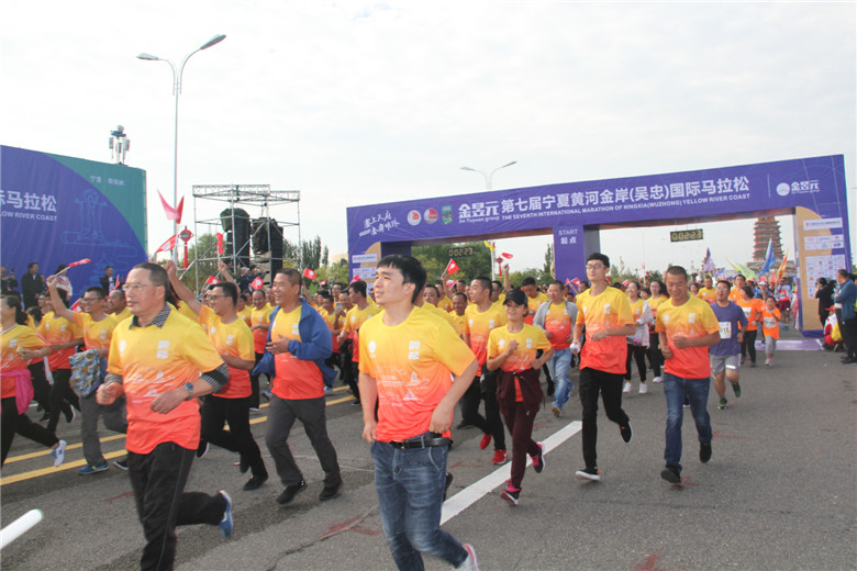 2018金昱元第七屆寧夏黃河金岸(吳忠)國際馬拉松在黃河奧林匹克公園開跑。金昱元與寧馬在2017年首次進(jìn)行馬拉松賽事合作就建立了良好的合作基礎(chǔ)與友誼。2018年,金昱元再次攜手寧馬,成為本屆寧馬賽事的總冠名贊助商。