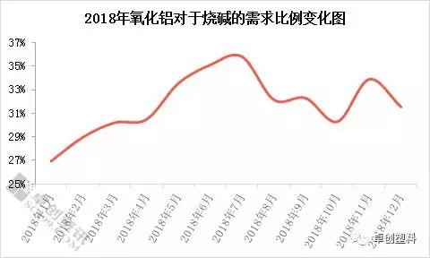 根據(jù)卓創(chuàng)監(jiān)測(cè),2018年氧化鋁對(duì)于燒堿的需求占比達(dá)到33%-34%,如上圖所示,2018年大多數(shù)月份氧化鋁行業(yè)對(duì)燒堿需求比例均超過(guò)30%,其中個(gè)別月份最高需求占比達(dá)到35.81%左右,最少的月份需求占比也在27%左右。毫無(wú)疑問(wèn),氧化鋁是目前燒堿下游需求行業(yè)中的“頂梁柱”般的存在,對(duì)燒堿市場(chǎng)起到明顯剛性需求支撐,是燒堿行業(yè)最值得信賴的需求點(diǎn)。