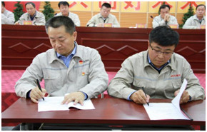 為了進(jìn)一步明確權(quán)責(zé),強(qiáng)化各級(jí)管理人員的責(zé)任意識(shí),提高履職能力,會(huì)上,集團(tuán)公司各級(jí)主管領(lǐng)導(dǎo)簽訂了《2019年經(jīng)營(yíng)管理目標(biāo)責(zé)任書(shū)》和《2019年安全環(huán)保目標(biāo)責(zé)任書(shū)》。