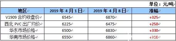 沉寂3個(gè)月的PVC,踏入4月后表現(xiàn)可謂突飛猛進(jìn)。尤其在PVC期貨實(shí)現(xiàn)移倉換月后,漲價(jià)動(dòng)能得到充分激發(fā),大舉突破震蕩狀態(tài),從4月1日至4月8日,大商所V1909合約收盤價(jià)漲幅近5.0%。而PVC生產(chǎn)廠家在庫存低位的情況下看漲情緒較強(qiáng),助推漲價(jià)潮在短時(shí)間內(nèi)愈演愈烈。