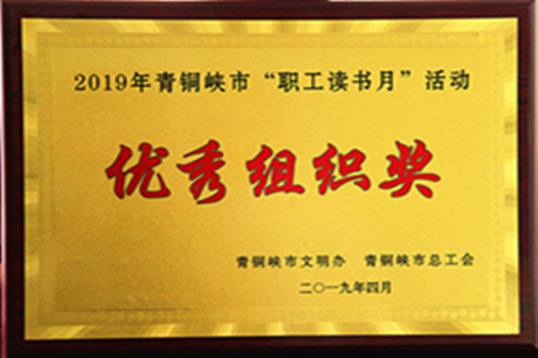 集團(tuán)公司工會(huì)取得優(yōu)異成績(jī),榮獲2019年青銅峽市“職工讀書(shū)月”活動(dòng)優(yōu)秀組織獎(jiǎng)。