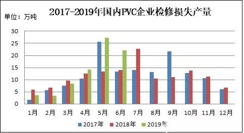 圖2 2017-2019年國(guó)內(nèi)PVC企業(yè)檢修損失產(chǎn)量