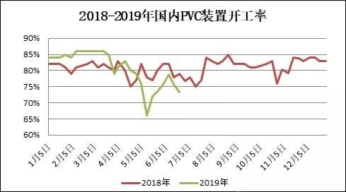 圖4 2018-2019年國(guó)內(nèi)PVC裝置開工率
