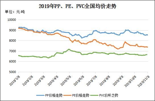 圖3 2019年P(guān)P、PE、PVC全國均價(jià)走勢(shì)