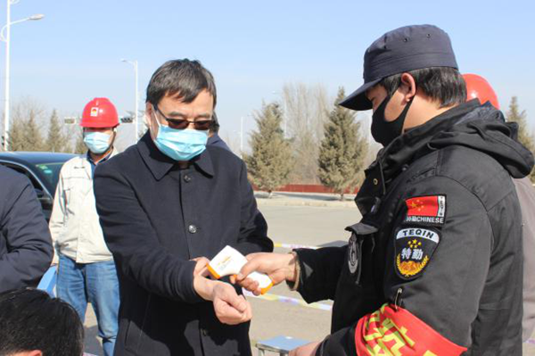 朱洪軍一行在疫情防控檢測點(diǎn)按檢測程序測量體溫、登記信息,詳細(xì)查看了疫情防控登記臺(tái)賬并到工作現(xiàn)場檢查。經(jīng)過細(xì)致檢查,對(duì)固原片區(qū)疫情防控工作給予了充分肯定。