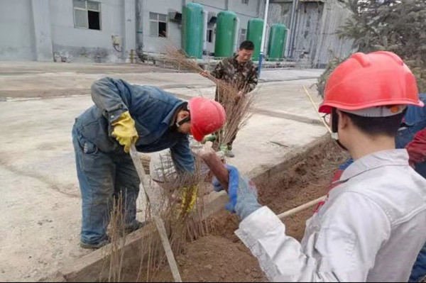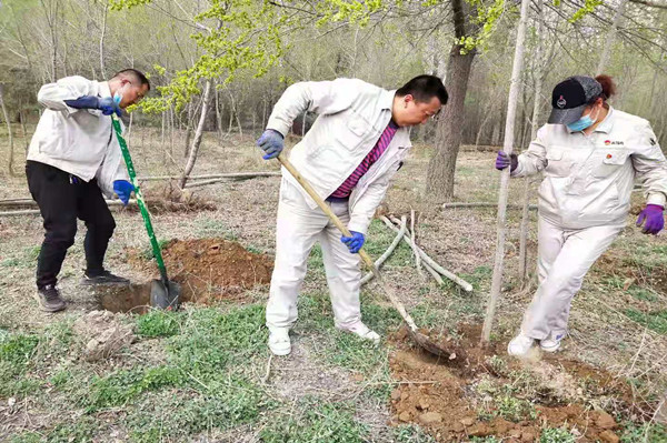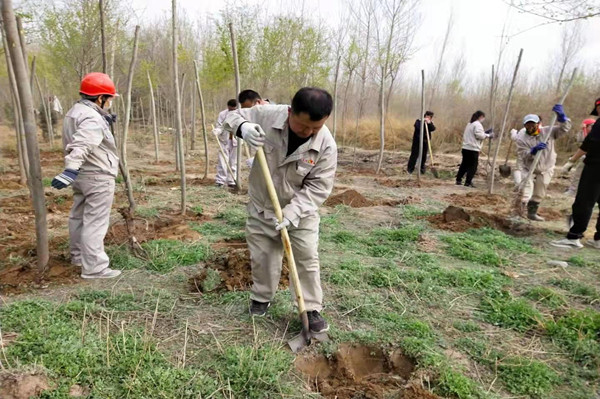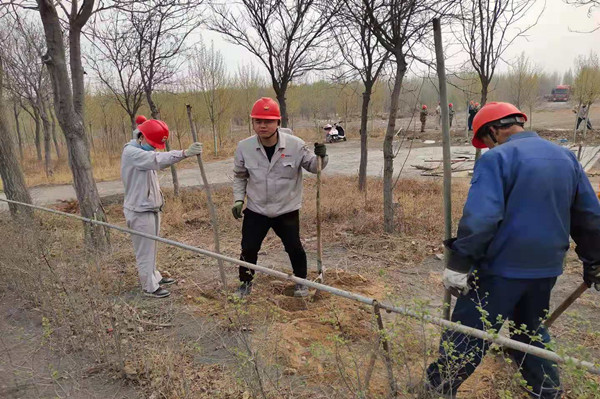 參加植樹的職工一到現(xiàn)場(chǎng),便投入到火熱的工作中。大家或揮鍬挖坑,或扶苗培土,或提桶澆水,所有人齊心協(xié)力、相互配合,現(xiàn)場(chǎng)一片繁忙景象。