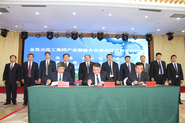 金昱元化工集團總裁陳文泓代表公司和吳忠市、青銅峽市政府簽訂產(chǎn)業(yè)鏈融合發(fā)展項目協(xié)議。