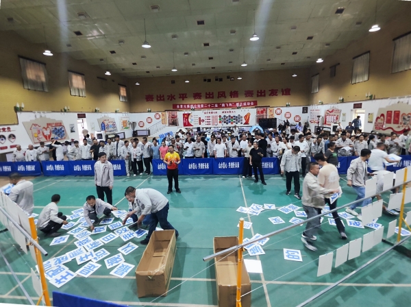 隨著裁判一聲令下,企業(yè)理念拼字比賽迎來激動人心的時刻。各參賽隊員不急不躁、有條不紊,大家集思廣益、默契配合,在最短時間內(nèi)準(zhǔn)確拼出“踐行綠色發(fā)展 留駐青山綠水”“山水昱心 共創(chuàng)好未來”“安全就是幸福 安全就是效益”等橫幅。