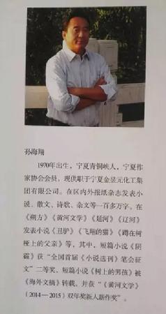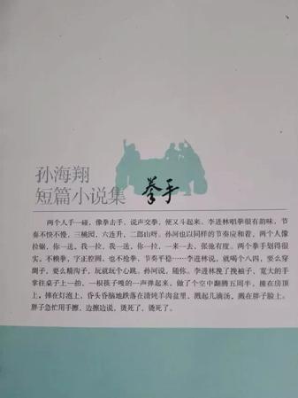 在文學日益式微的今天,仍有一些虔誠的信徒堅守在文化創(chuàng)作的金牧場,F(xiàn)供職于寧夏金昱元化工集團有限公司的孫海翔,二十年如一日始終在青銅峽市這片熱土上堅持著他的文學夢想。歷時半年,短篇小說集《拳手》終于出版。這是青銅峽市作家孫海翔出版的第一部書,共收入28篇短篇小說。
